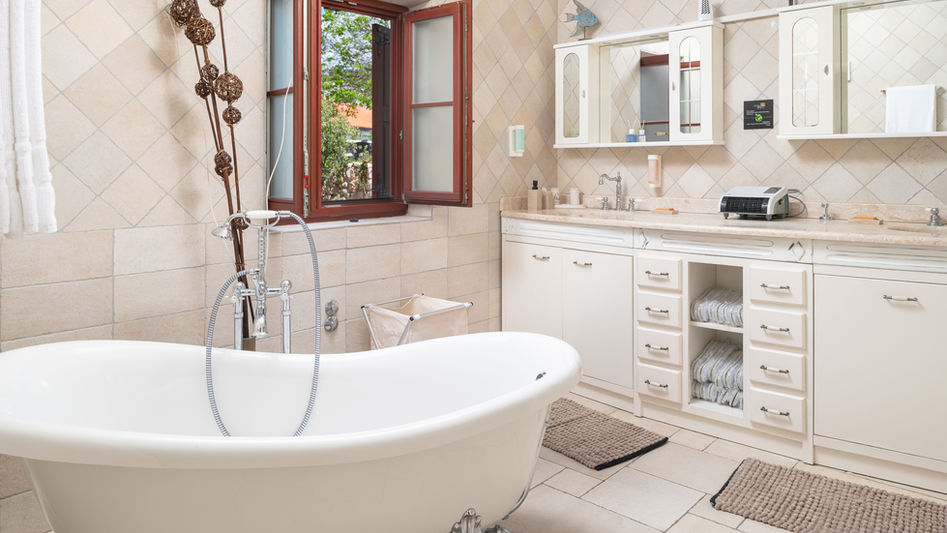 It also has four renovated bathrooms with towels, slippers, hair & body wash gels, fully equipped kitchen with everything you need; bottled water, coffee, sugar, spices...